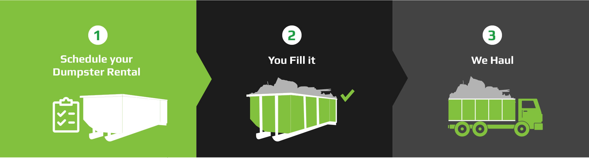 We will drop-off our Dumpster so you can fill it up, and when ready we will pick it up and take care of the waste disposal.